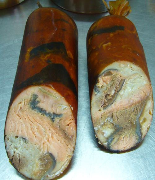 По разработанным рецептурам специалистами ФГУП «ВНИРО» изготовлены образцы формованной продукции, изучен их химический состав и определена энергетическая ценность. Органолептическая оценка изготовленной продукции показала, что образцы имели нежную, сочную консистенцию, при разрезе не крошащуюся, вкус и запах приятные, свойственные данному виду продукта, с легким ароматом копчения. Цвет фарша и кусочков рыбы, свойственные цвету вареной рыбы, используемой по рецептуре во всех образцах.