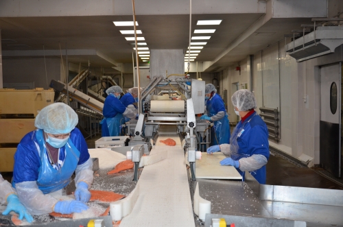 Автоматика, это хорошо, но есть операции, с которыми лучше справятся руки человека: удаление мелких грудных плавников, оставшихся косточек... К каждому рабочему столу подведена вода для обработки рук, инструмента и удаления ошметков рыбы.