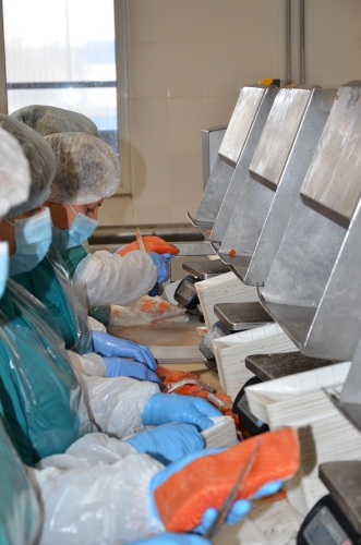 Икорный цех. Собственно внутрь нас не пустили, всё-таки безопасность прежде всего. В целом, особенностью производства икорных продуктов, является большая удаленность мест выработки икры от мест производства и сбыта в больших городах. Для такого нежного продукта как икра лососевых, важно сначала отобрать, а потом не испортить сырьё с самого начала.