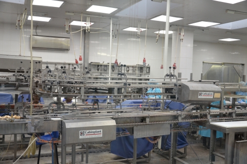 Охлажденная(!), потрошеная рыба выгружается из пенопластовой тары на конвейер. Тушка насаживается на крюк и поступает на филетировочную машину Baader. Позволю себе сделать ещё одно отступление, практически все автоматизированные процессы выполняются на оборудовании ведущих мировых поставщиков: Baader, Marel, Carnitech, Cabinplant, Convenience Food Systems и т.д., что знающему человеку говорит о технологической оснащенности и больших инвестициях в производство.