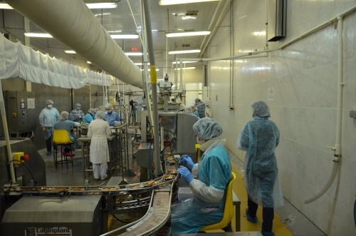 Далее мы познакомились с работой линии по производству пресервов из морепродуктов «Медитирана Бар». Вот где настоящая сложность и автоматизация! Чем меньше человек участвует в процессе, тем меньше вероятность привнести в продукт микробы и прочие нехорошести.
